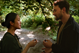 "Compared to the more fragmented, mosaic-like narratives of Violet and Hellhole, Here is a linear experience; Stefan and Shuxiu’s storylines unfold along separate tracks until a chance encounter at her family restaurant and then another in the woods where she searches for mosses. But the plot, such as it is, remains resolutely low stakes. The incidents paving the couple’s wanderings (a broken car, a torrential summer storm) are almost the stuff of fairy tales, and the film itself seems to hang in a dreamlike realm for long passages, which graces its most on-the-nose associationswith an ethereal beauty."