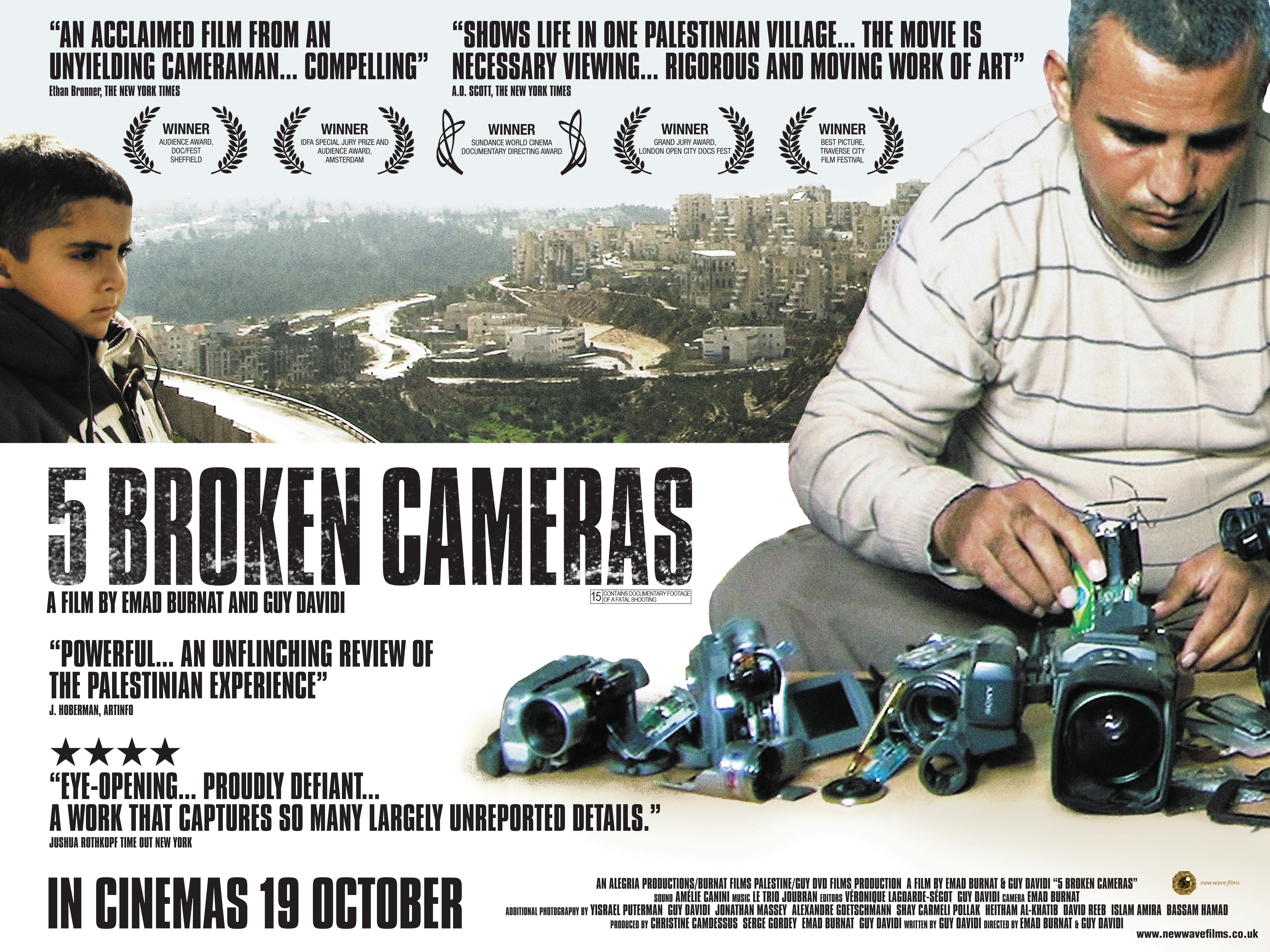 “Israel’s Palestine-excluding barricade – that concrete monster – is the war-maker in 5 Broken Cameras. This extraordinary diary movie was made by West Bank villager Emad Burnat...A film whose visual honesty is unsparing and unflinching”