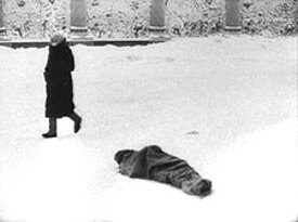 Winter. People are waiting for a bus in the Russian town of Okulovka. They talk. Listening to their conversations, the viewer is immerged in the world they live in. United by the movement of the camera, the whole place and the people blend together. Reminiscent of the work of Michael Snow and of Chantal Akerman in D’Est (1992), Landscape is an absorbing documentary showing both the people waiting for a bus and the atmosphere of this wintery wait, the tensions and worries featured in discussions recorded separately from the image, resulting in a poignant and often funny documentary.